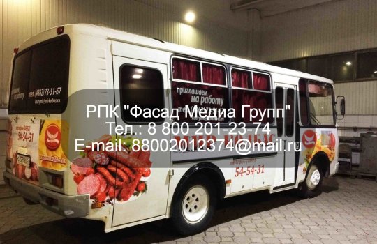 РПК «Фасад Медиа Групп» разместило рекламу нашего клиента на бортах городских автобусов. Целью заказчика является популяризация собственного бренда, а именно производства колбас